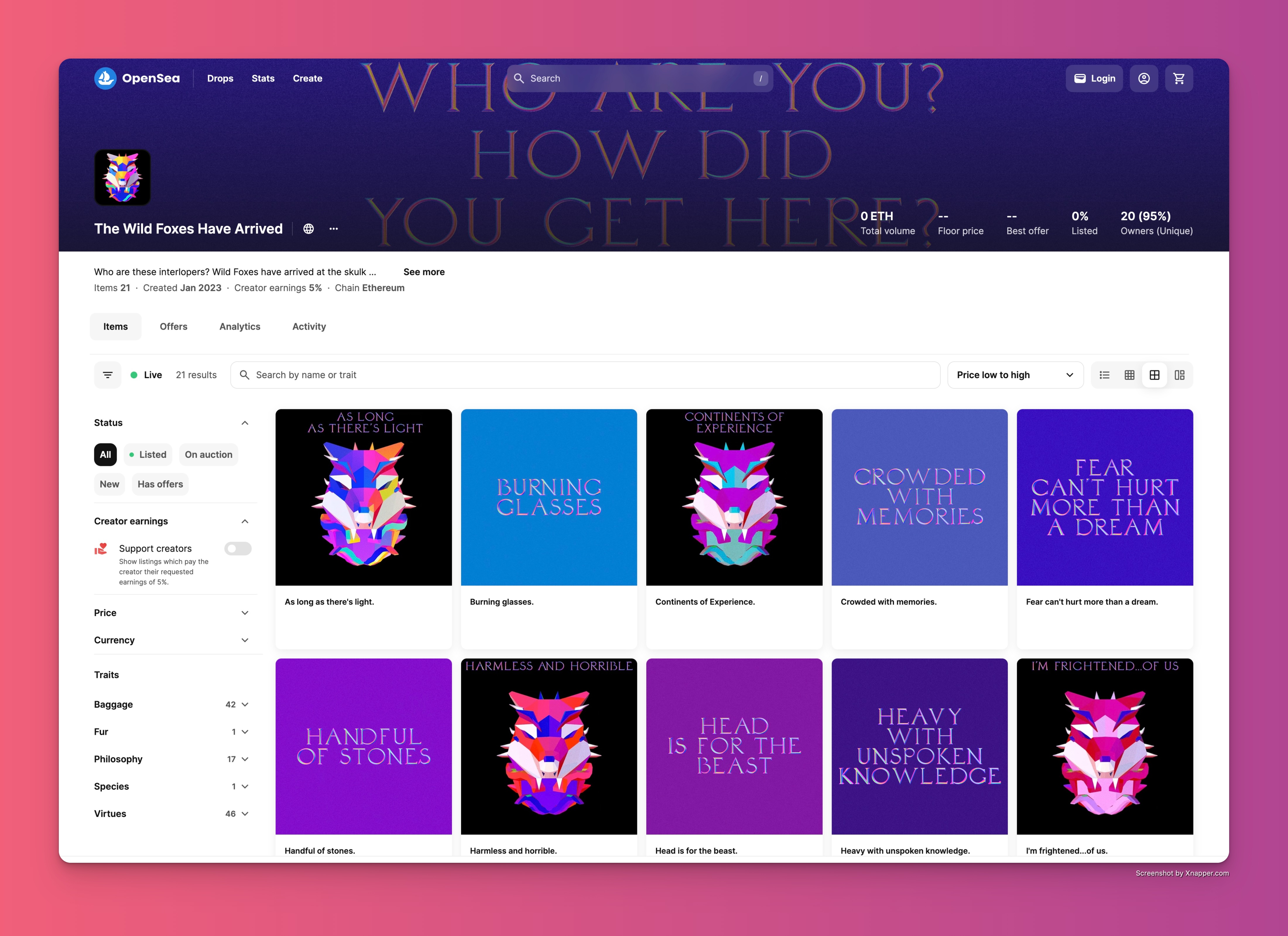 The Philosophical Foxes, an experiment in NFT storytelling, intellectual property and community, built on the Ethereum blockchain.